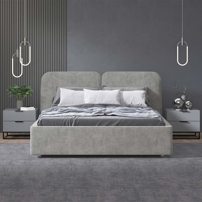 - Мягкая обивка изголовья, выполненная в виде двух объемных подушек добавляет комфорта кровати