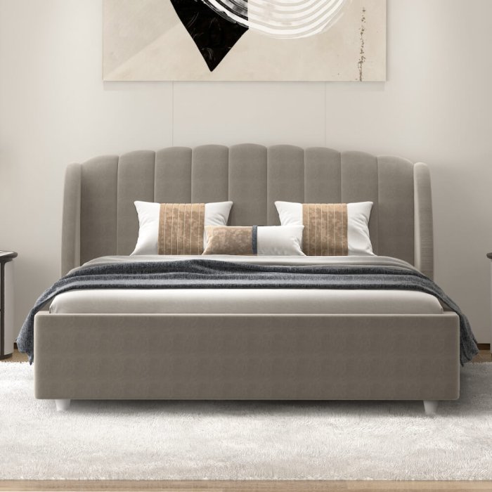 • Cпинка оптимальной высоты - кровать хорошо будет смотреться в спальной комнате как с невысокими, так и с высокими потолками.