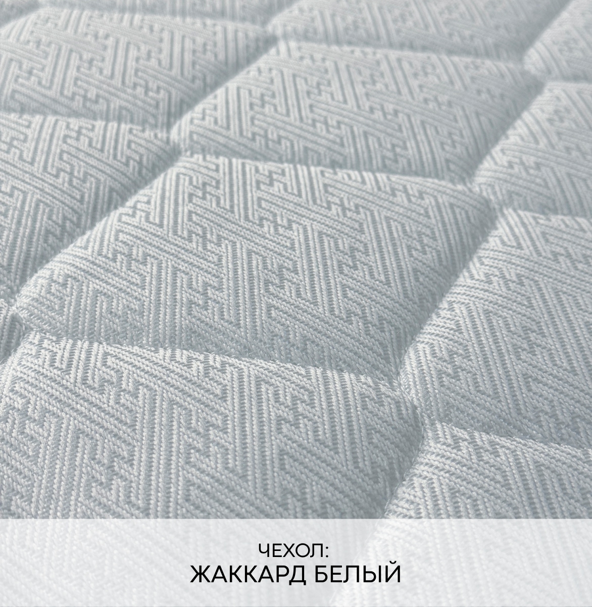 Жаккард Белый — это высококачественная ткань, которая является ключевым элементом комфорта любого матраса. Изготовленная из сочетания хлопка и полиэстера, она объединяет мягкость натурального волокна и прочность синтетической нити. Ткань обладает отличными эксплуатационными свойствами: Гипоаллергенность — безопасна для чувствительной кожи. Материал «дышит» — обеспечивает оптимальный микроклимат во время сна. Долговечность — сохраняет форму матраса и внешний вид при длительном использовании.