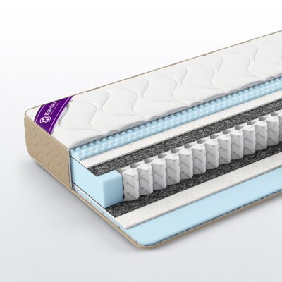 Термовойлок - нетканый материал, состоящий из 45% льна, 45% джута и 10% синтетических волокон, получаемый путем спекания по специальной технологии. Материал высокой плотности. Используется для защиты мягких настилов матраса от воздействия пружинного блока, равномерно распределяет нагрузку по всему матрасу, придает дополнительную жесткость, упругость и долговечность.