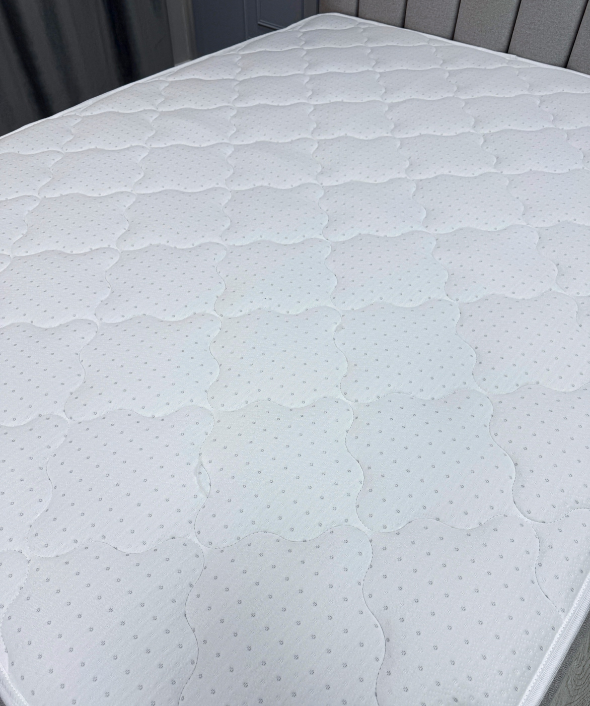 Бурлет из мебельного велюра «Teddy» - Бурлет матраса изготовлен из плотного износостойкого велюра «Teddy» цвета 005. Этот материал обладает высокой устойчивостью к истиранию (100 000 циклов по тесту Мартиндейла) и не подвержен деформации, что позволяет матрасу надолго сохранять первоначальный вид. Велюр легко очищается от самых сложных загрязнений, что делает его практичным в использовании.