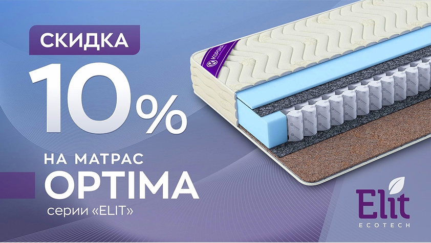 Скидка 10%  на матрас Elit «Optima». Акция действует с 01.11.2025г. до 31.12.2025г.